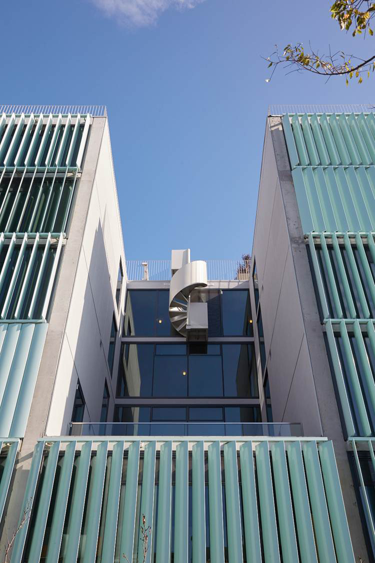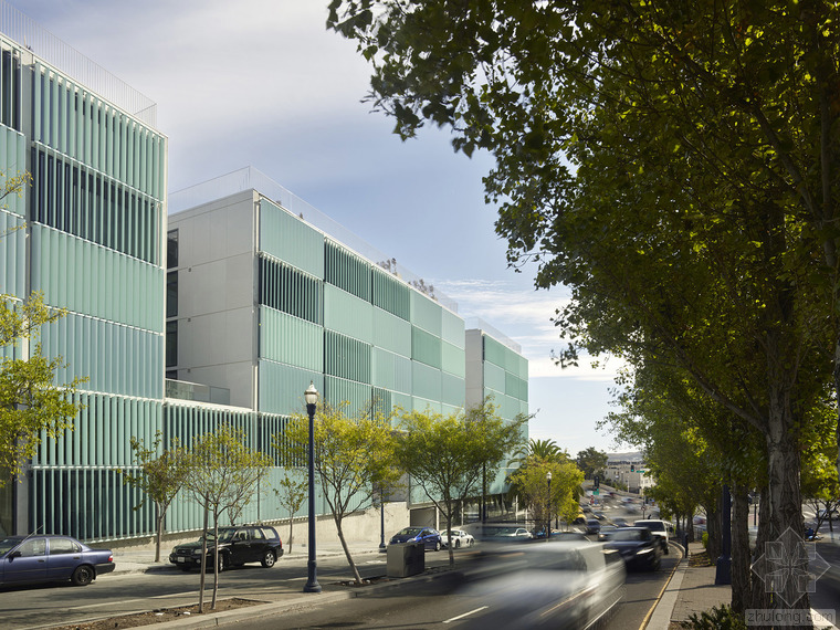 8 Octavia毗鄰101公路,成為進(jìn)入舊金山的地標(biāo)性建筑。由住戶自由操作的百葉窗,讓建筑立面展現(xiàn)出變化的形象。為了更有效的利用空間,建筑采用復(fù)式設(shè)計(jì),且每個(gè)單元中間包含一個(gè)中庭。建筑設(shè)備隱藏在墻壁內(nèi),為居住者提供足夠的可利用給空間。場(chǎng)地位于101公路與城市道路的連接處,這里也是舊金山西北區(qū)的入口。The First Baptist Church教堂的典型立面及顯著的檐口是這棟建筑的顯著標(biāo)志。與其相反的,在Octavia Boulevard大道的另一邊,8 Octavia完善了城市的入口景觀。這棟地標(biāo)性建筑以其傳統(tǒng)又創(chuàng)新的外貌,成為舊金山的新地標(biāo)。細(xì)長(zhǎng)的建筑體量在街道上延展,并在兩端形成商業(yè)區(qū)。傳統(tǒng)上的舊金山街道立面都較為精致,賦有精巧繁復(fù)的立面裝飾,除此之外,這些當(dāng)代建筑需用較低的能量消耗和較少的材料來(lái)滿足居住的需求。建筑外表皮需具備自我調(diào)節(jié)能力,隨著時(shí)間和季節(jié)的變化做出相應(yīng)改變,并適時(shí)的調(diào)整室內(nèi)環(huán)境氣候。在建筑的西立面,每一戶居住著都可以通過(guò)調(diào)整外立面百葉窗來(lái)控制自家的太陽(yáng)光照強(qiáng)度,噪音大小,并同時(shí)改變著外立面圖案。這種不統(tǒng)一的變化如同指示牌,不斷映射著居住者的生活狀態(tài)。